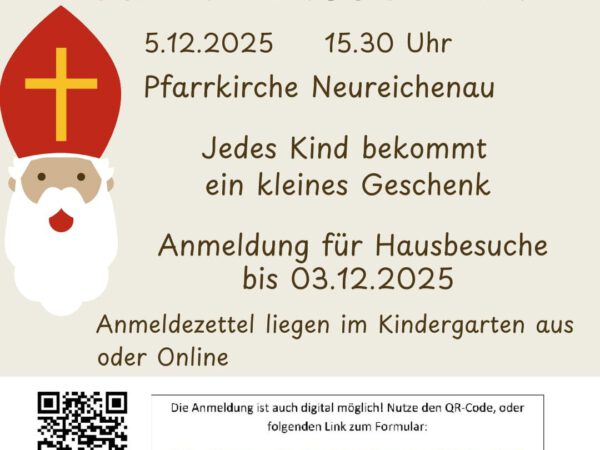 Der Nikolaus und sein Team werden am 05.12.2025 um 15:30 Uhr feierlich in der Pfarrkirche Neureichenau empfangen. 🎅