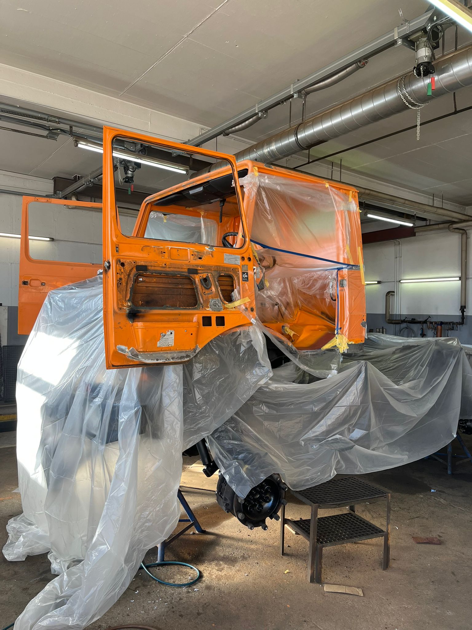 Die Lackarbeiten an der Kabine wurden von einer ansässigen Fachfirma übernommen und zur vollsten Zufriedenheit des Bauhofs ausgeführt. Die Zusammenarbeit mit dem regionalen Handwerksbetrieb unterstreicht den lokalen Bezug und die hohe Qualität des Projekts.