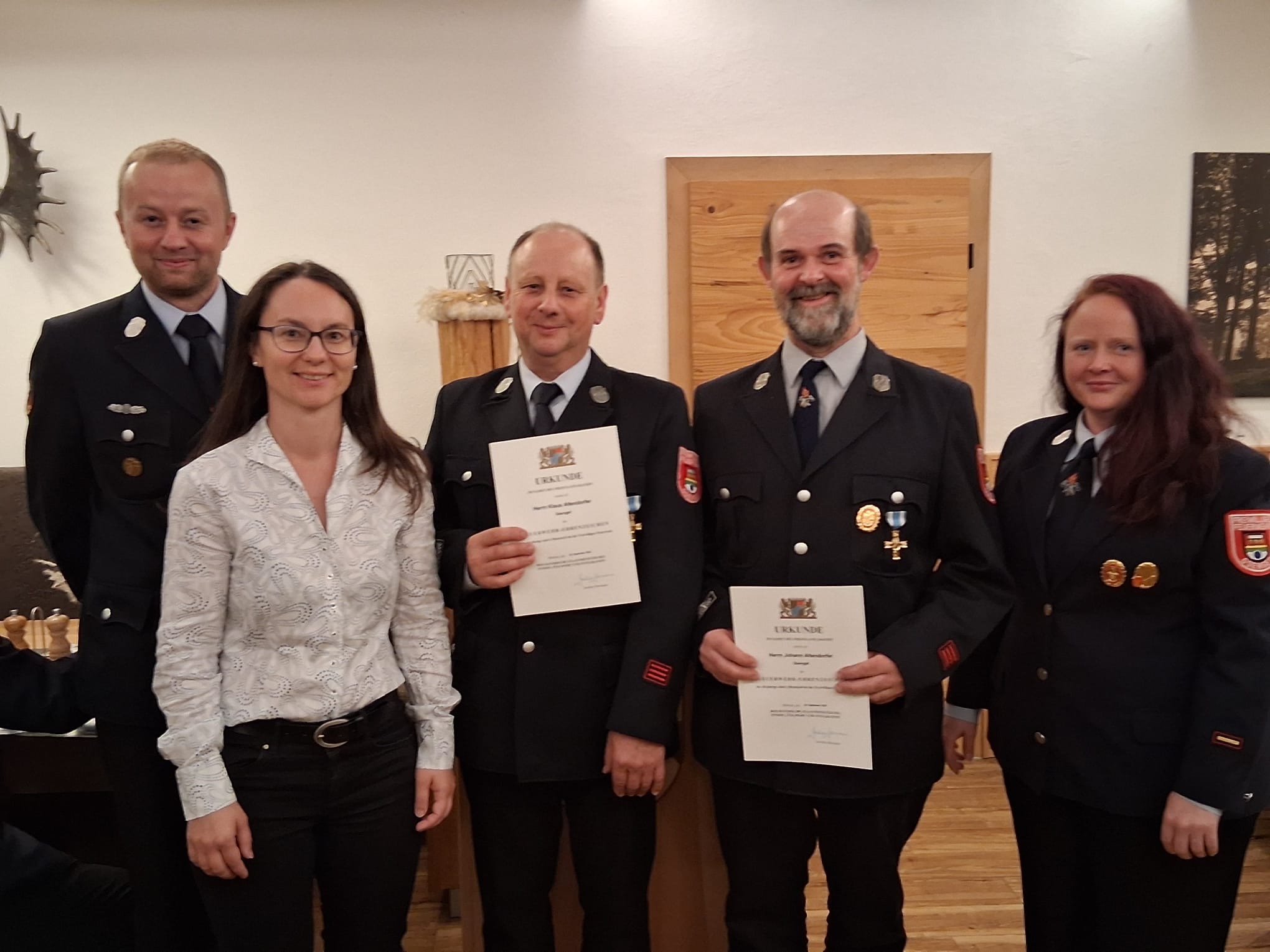 Vertreterinnen und Vertreter aus allen fünf Ortsfeuerwehren kamen zusammen, um verdiente Mitglieder für ihren engagierten und oft jahrzehntelangen Dienst zu würdigen.