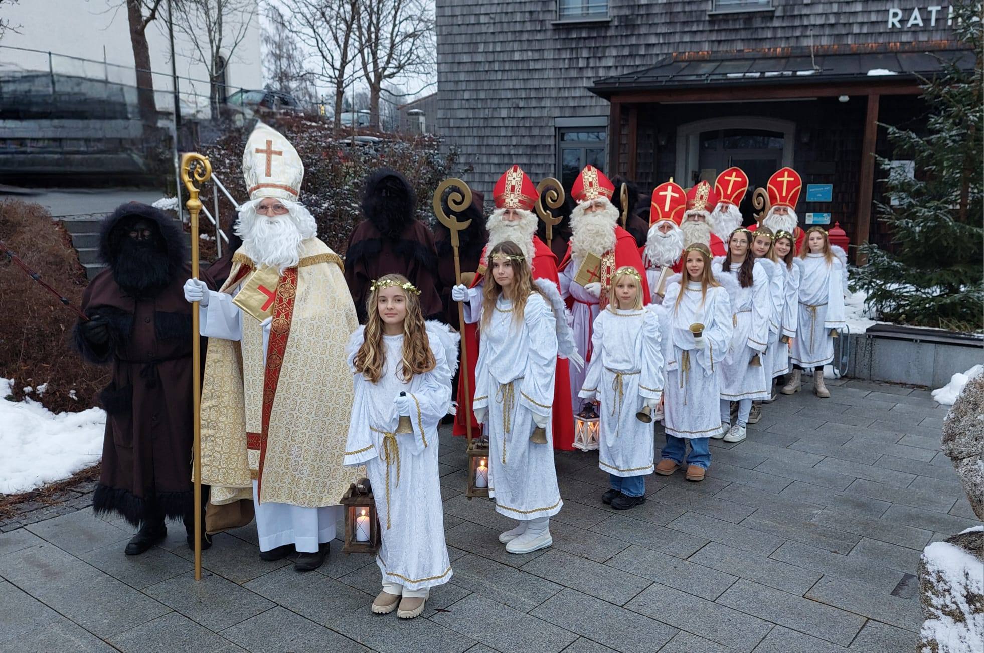 In der kurzen Andacht wandte sich der Obernikolaus der Nikolausgilde Neureichenau an die zahlreich teilnehmenden Kinder. Er las im Großen Buch die Einträge zu Neureichenau vor und wandte sich insbesondere an Pfarrer Emil Dragula und Bürgermeisterin Kristina Urmann.