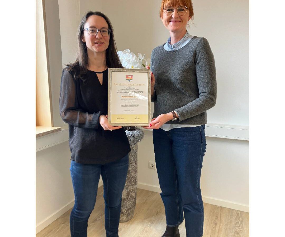 Bürgermeisterin Urmann gratuliert Frau Gibis herzlich zur erfolgreichen Qualifikation und zur Übernahme ihres neuen Amtes.