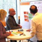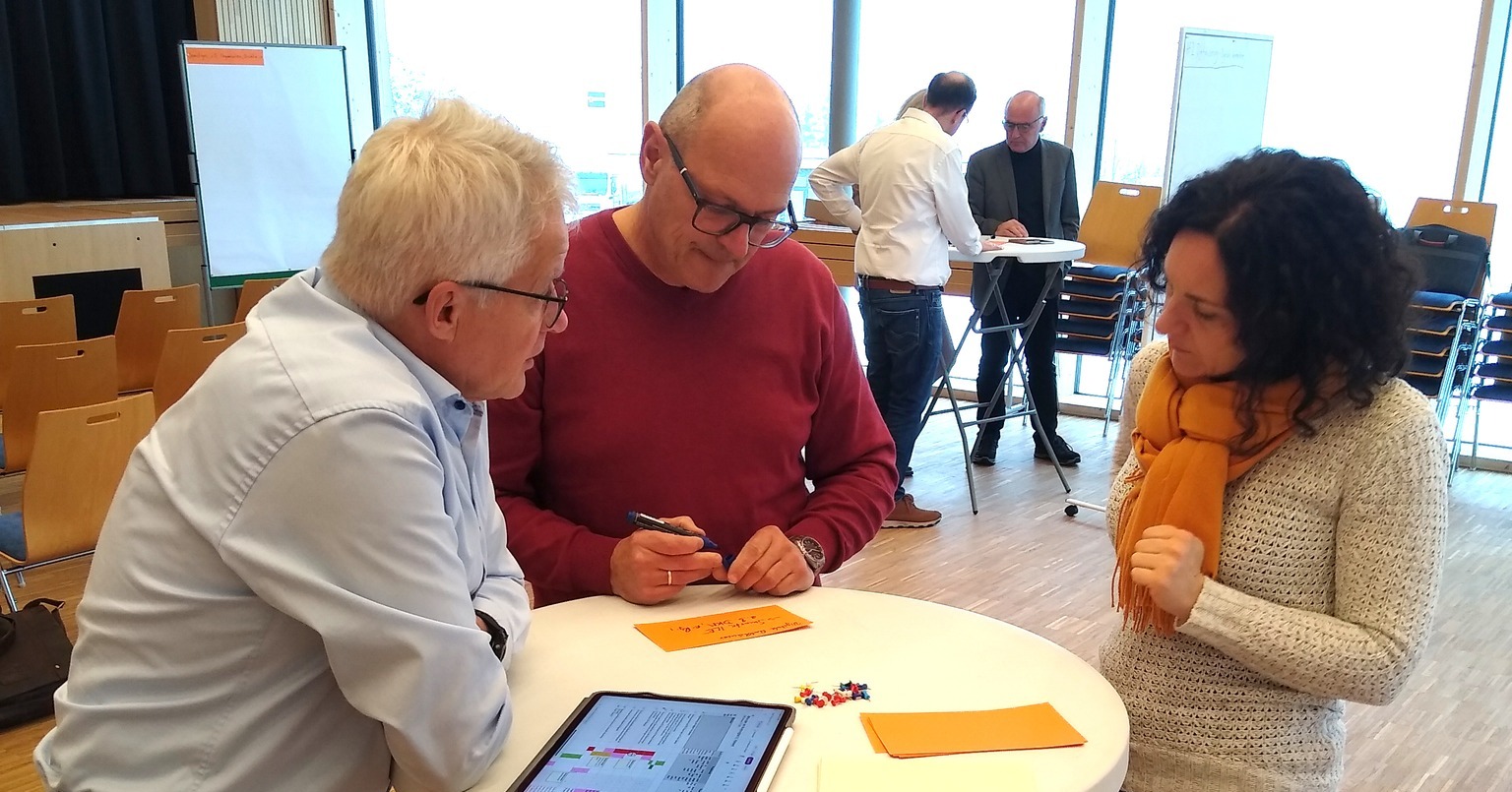 Im Mittelpunkt des Workshops stand anschließend eine gemeinsame Rückschau: In fünf Arbeitsgruppen diskutierten die Teilnehmer die Entwicklung der vergangenen Jahre in den Handlungsfeldern Verwaltungszusammenarbeit, Digitalisierung, Innenentwicklung, Energie und Tourismus. Positive Erfahrungen wurden auf grünen Karten festgehalten, Verbesserungsmöglichkeiten auf orangenen.