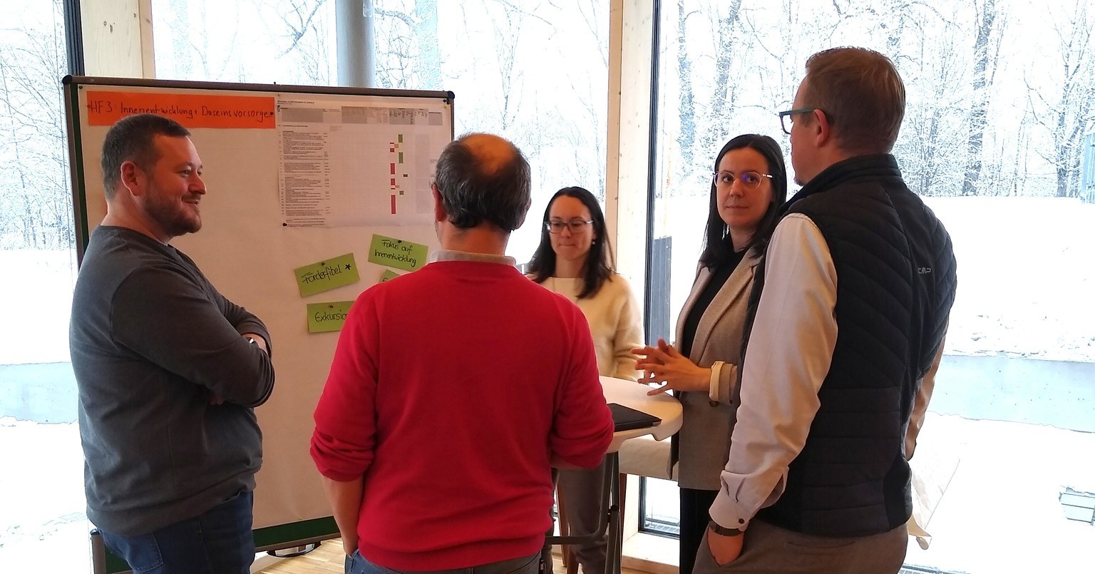 Bürgermeister Roland Freund aus Jandelsbrunn und die ILE-Vorsitzende, Hauzenbergs Bürgermeisterin Gudrun Donaubauer, begrüßten die Teilnehmer. Gemeinsam mit Moderator Sven Päplow, ILE-Umsetzungsbegleiterin Edith Stadlmeyer sowie den externen Fachbetreuern Matthias Obermeier (Energie) und Florian Riesinger (Innenentwicklung) wurde zunächst der Ablauf der Evaluierung der ILE-Arbeit vorgestellt.