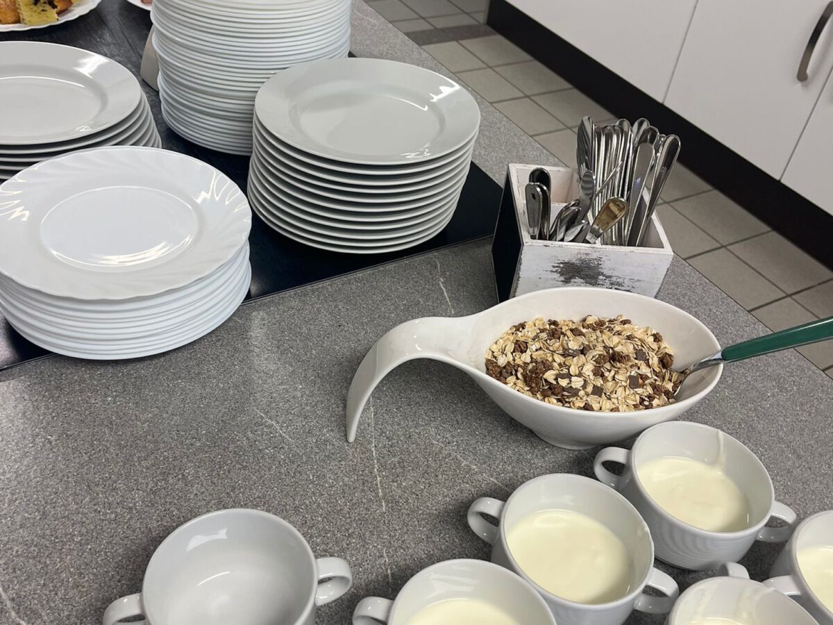 Von nun an müssen die Kinder keine eigene Brotzeit mehr von Zuhause mitbringen. Es gibt täglich wechselnde Brotzeit, die gemeinsam mit den Kindern morgens vorbereitet wird. Von Milch und Joghurt, bis frische Früchte und leckerem Brot, fehlt nichts. Die Kinder aus dem Kindergartendorf sind begeistert!