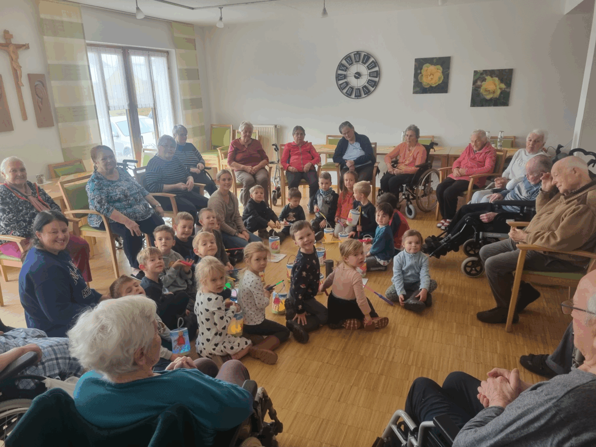 In der St. Martins-Woche besuchten die Kindergartenkinder der Waldameisengruppe ihre Nachbarn – das Rosenium in Neureichenau. Die Kinder sangen verschiedenen Martinslieder und führten einen Lichtertanz auf. Anschließend zogen sie mit ihren Laternen durch die Stationen des Hauses. Als Erinnerung überreichten die Waldameisen selbst gemalte Bilder und kleine Basteleien. Der Besuch sorgte für strahlende Gesichter bei Jung und Alt.